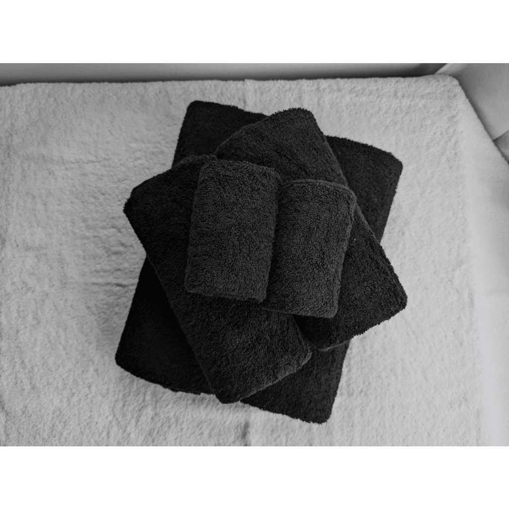 Černé froté ručníky 30x50 ve výhodném balení 10 ks jsou vyrobené ze 100 % bavlny s gramáží 500 g/m2, takže jsou měkké, savé a ideální pro každodenní používání.