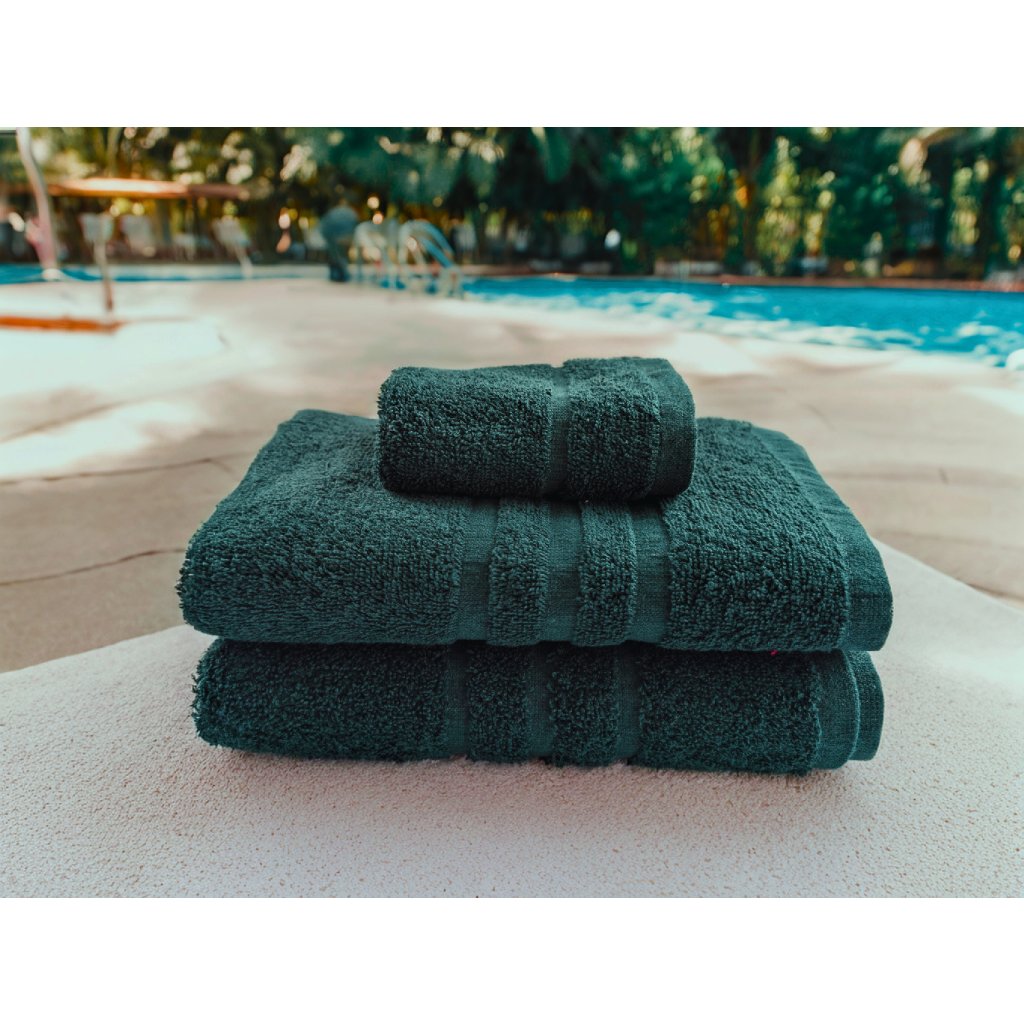 Tmavě zelená sada SPORT obsahuje ručník 30x50 a ručník 50x100 – ideální kombinaci pro posilovnu, běhání i domácí trénink.